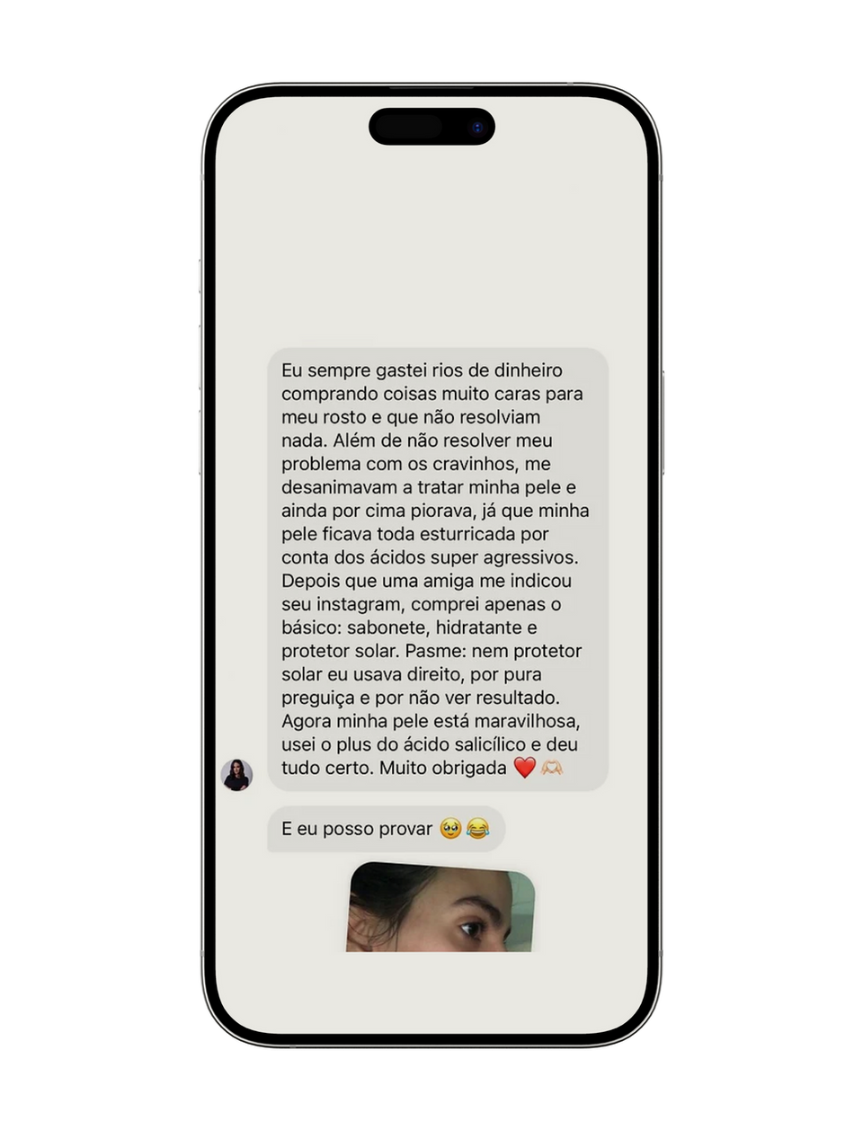 Tive acne por mais de 10 anos e por isso auto estima sempre foi um problema. Consegui transformar a minha pele quando finalmente a compreendi. Entendi que precisava de muito mais carinho, gentileza e paciência do que eu dava antes. Com menos produtos, produtos menos agressivos. e tempo minha pele chegou finalmente aonde sempre quis. Isso para mim é se amar.